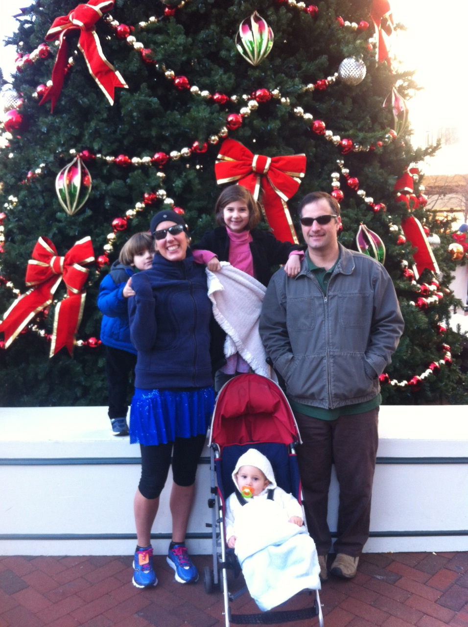 Today’s race (the Potomac River Running New Year’s Day 5k in Reston) started at 10:00AM and was just minutes from my house, so Robert and all three of our kids came to cheer me on. This is without a doubt the biggest reason I LOVE local 5ks – it is easy for my family to come watch me run, and I love love LOVE having them there.