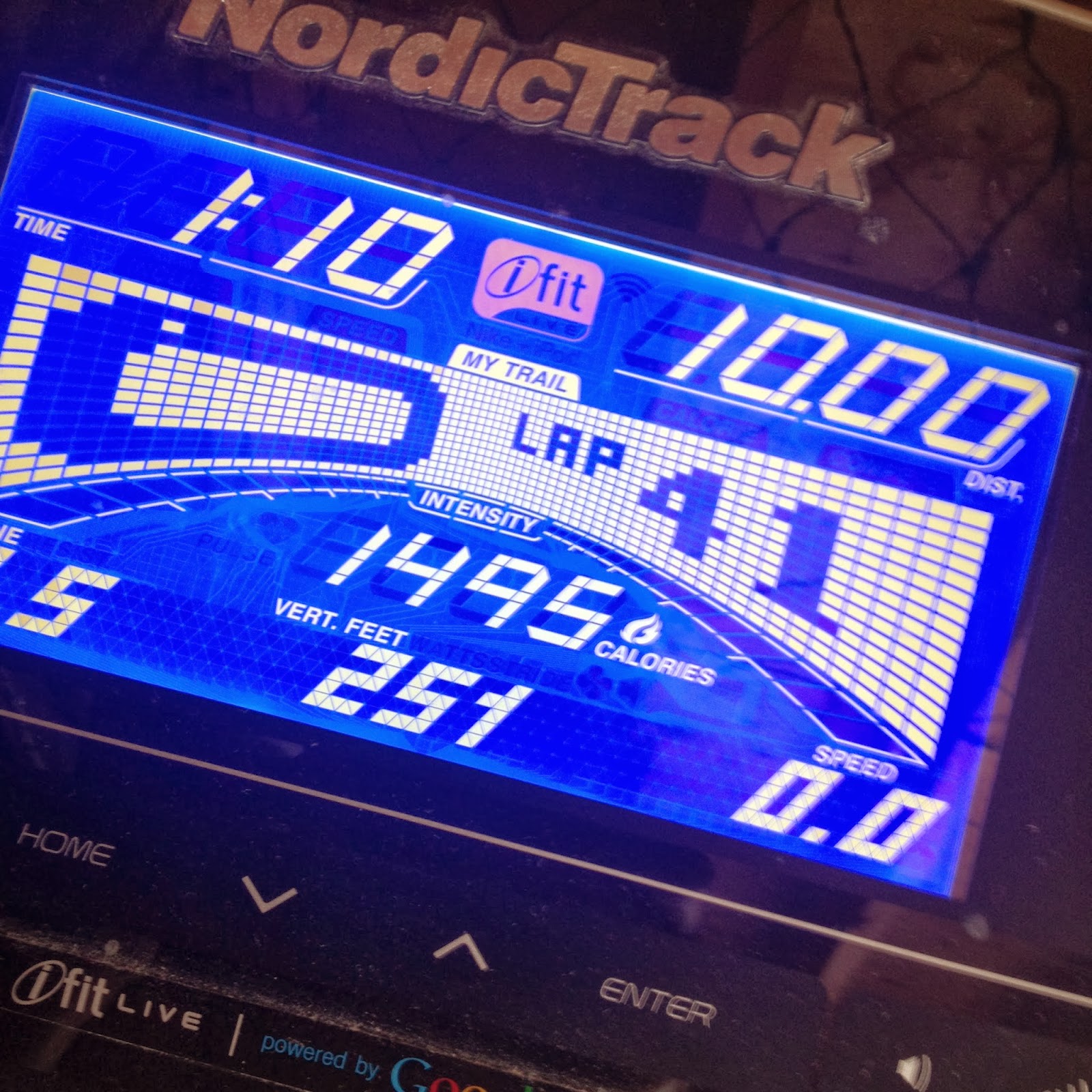I wasn’t even stepping on the treadmill until after 11am. I hopped on and started running and was planning on 10 miles with 5 of them in the 6:15-6:30 pace range. Wednesday is usually my track day but that obviously wasn’t happening so I figured I would pick up my speed in some way on the treadmill today. I warmed up with around 3 miles before Gus needed something. He has a yucky cold and just isn’t himself, poor guy. Once he was settled I hopped back on and ran a bit, but then Abby came in from the cold and needed help with her snow gear and wanted some hot cider and a snack. So I paused the treadmill again. I kept getting on and then off, on and then off for one reason or another. One reason or another that was very clearly to me more important than my run and I never hesitated to take care of it, but it was at times making me think I was ridiculous for trying to fit 10 miles in on a day like this. I was starting to get grumpy.