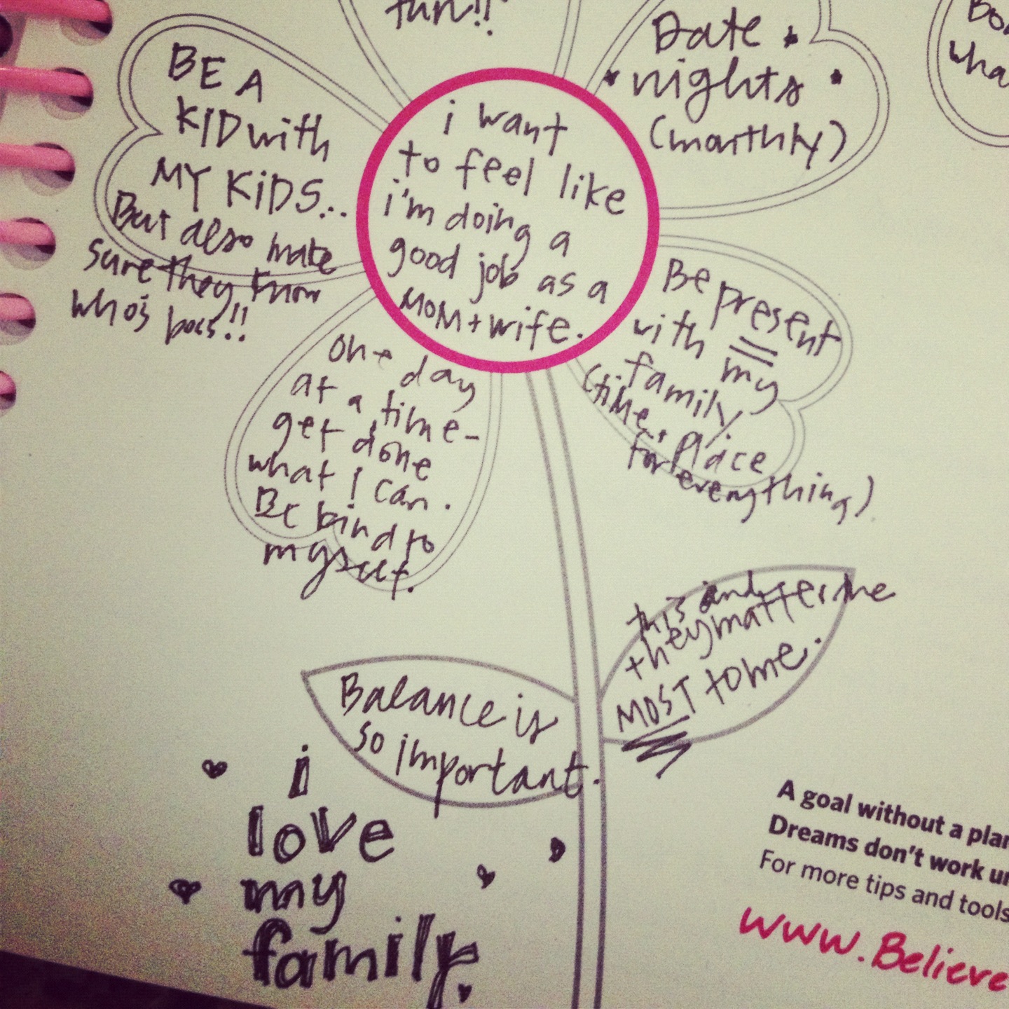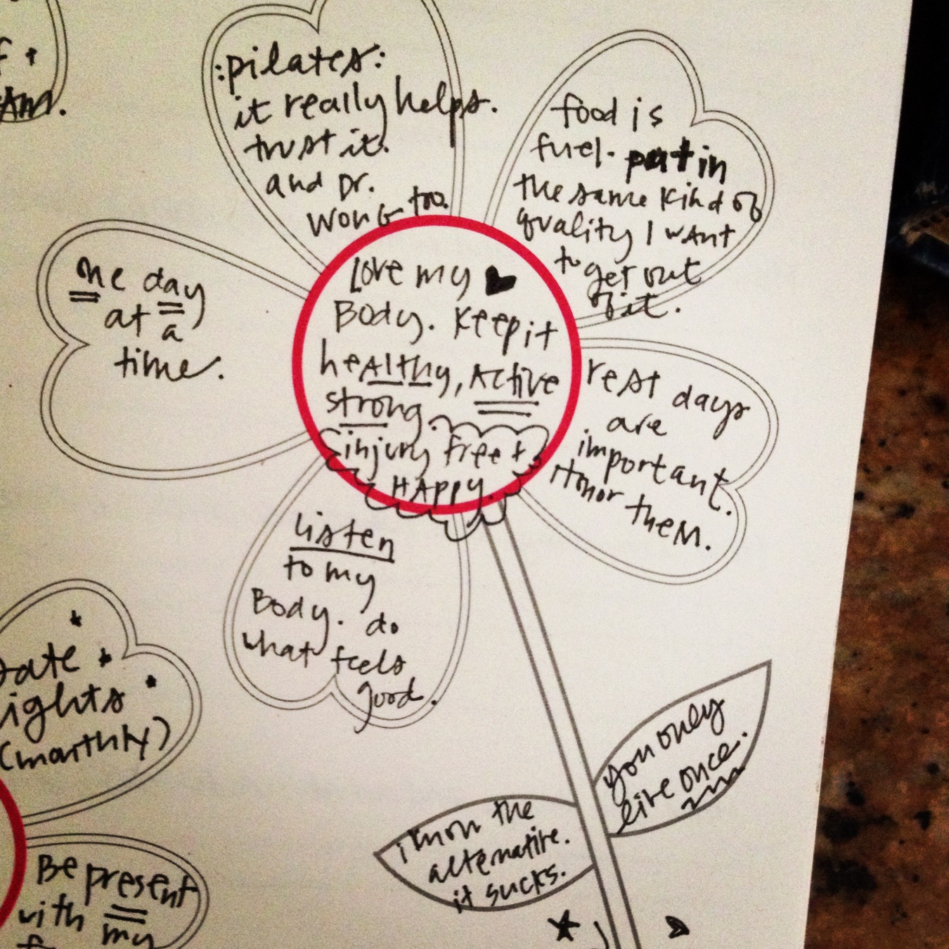 The goal setting page of this journal is where a lot of this began to happen for me. We are given three “flowers” to set and work through our goals on. The center of the flower is the goal, the petals are the steps you need to take to achieve them and the leaves are the reasons for your goals.