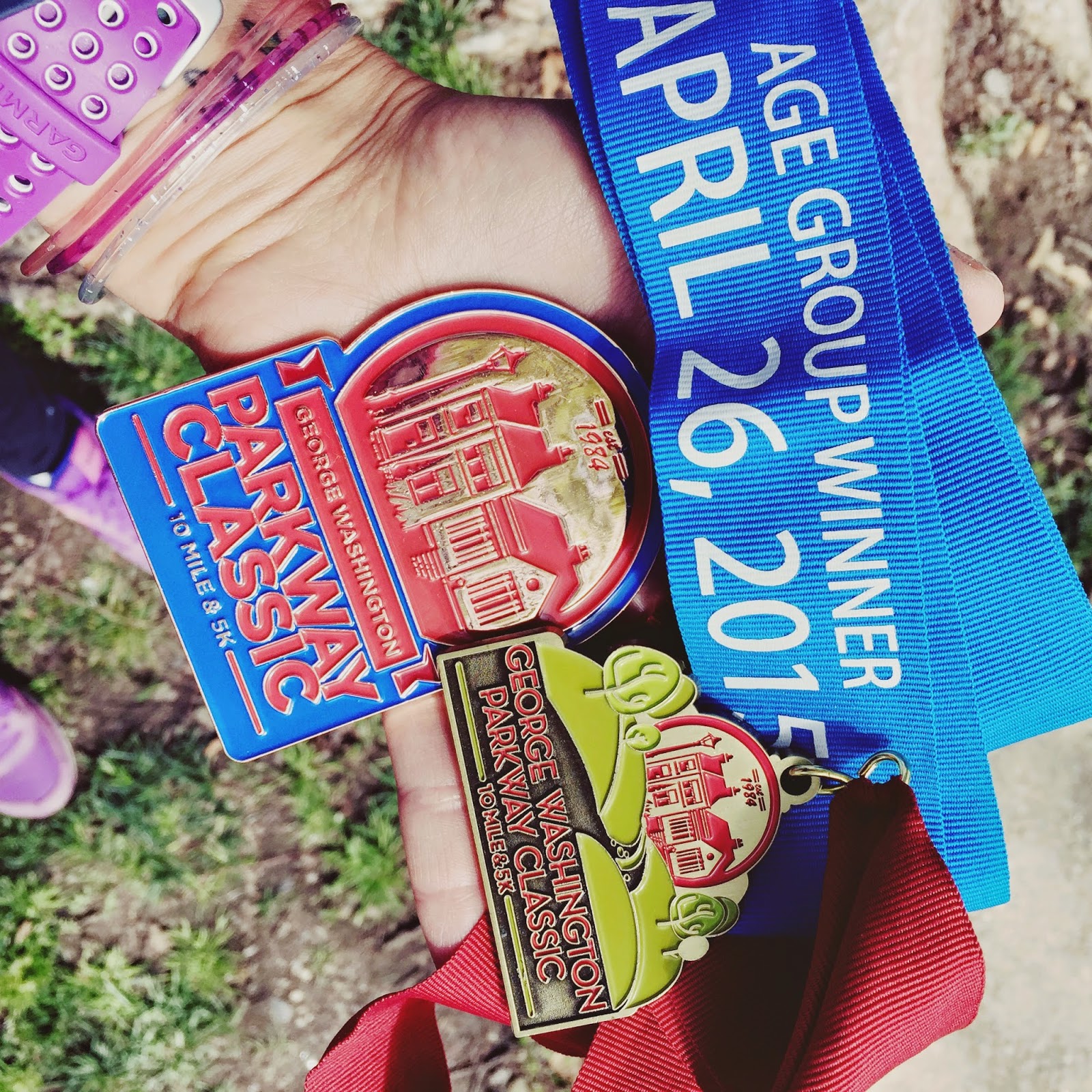 Two weeks ago I ran the GW Classic 10 Miler. It was a strong and happy race for me. I finished right around where I expected I would (1:09 and change), ran steady and strong with no stomach issues. I set a course PR but was well off of my fastest time (a good 4 minutes) for that distance. This winter and spring were not about pushing myself for fitness gains, but rather about finding a healthier running/life balance and giving my body, mind and emotions a break from hard training. I loved being at this race and was happy with how it went. Placing 3rd in my age group was unexpected and a nice icing on the cake of a happy race. This race is one of my very favorites in the DC area! I was honestly just so grateful to show up to a start line and feel excited to run, regardless of what the time on the clock was. For the last several years I have been gunning for faster times at basically every race I signed up for, so this has been a great change of pace for me these last several months. It has been just what I needed, to feel like me again, to reset things for a healthier balance, and to help make me stronger moving forward in running and, more importantly, in life.