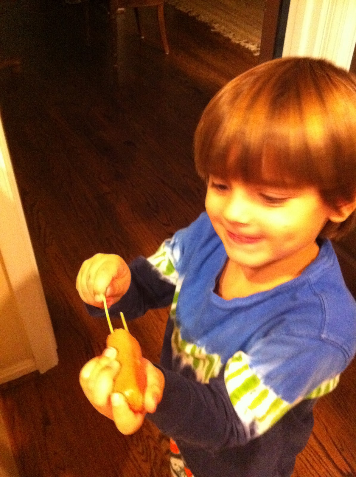 I was really excited when a babysitter shared the following idea with me. It involves hot dogs so is definitely not a *healthy* dinner, but it is something you can make with and for your kids, it is EASY and it is FUN, so I was eager to try it out. It was a BIG hit in my house, so I thought I would share here for you moms out there. I wasn’t sure what to call it and when I asked my kids what they thought, they insisted that we call them “Hot Dog-a-Puses” because when cooked these things look like octopuses. I actually think they more resemble jellyfish, but we’ll go with it.