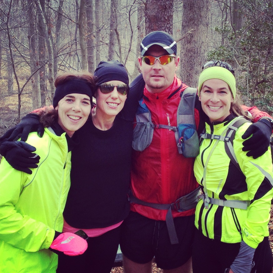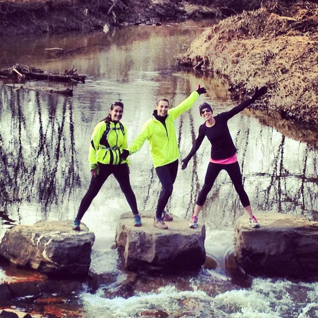 I ran in the woods with my friends. We explored the trails and discovered new places to run and train.