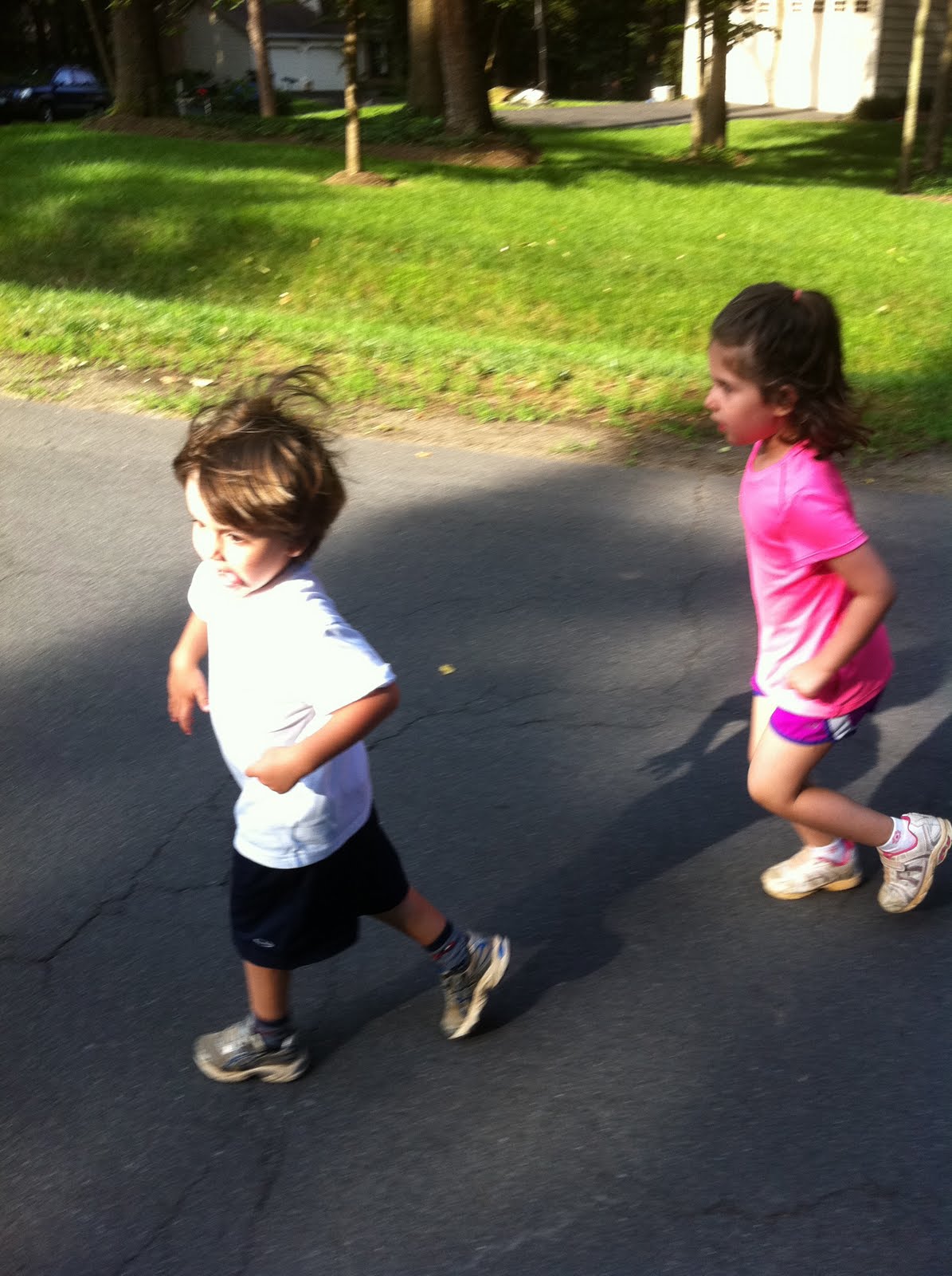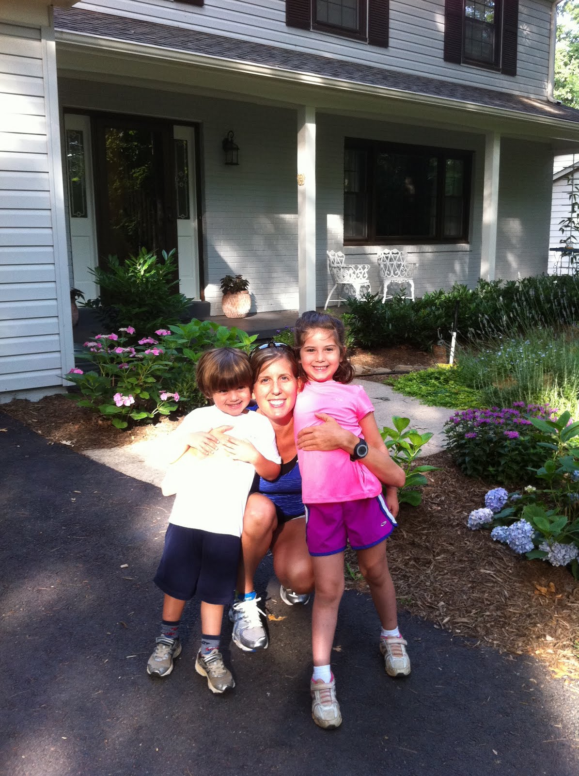 Yesterday morning before my 6 mile recovery run I took the kids out for one loop around the neighborhood as their first “training run.” It was a blast. The loop is 3/4 of a mile. I think it took us about 20 minutes. We had to take walk breaks and “stop breaks” as Abby called them, but we were all smiles and laughter the whole way.