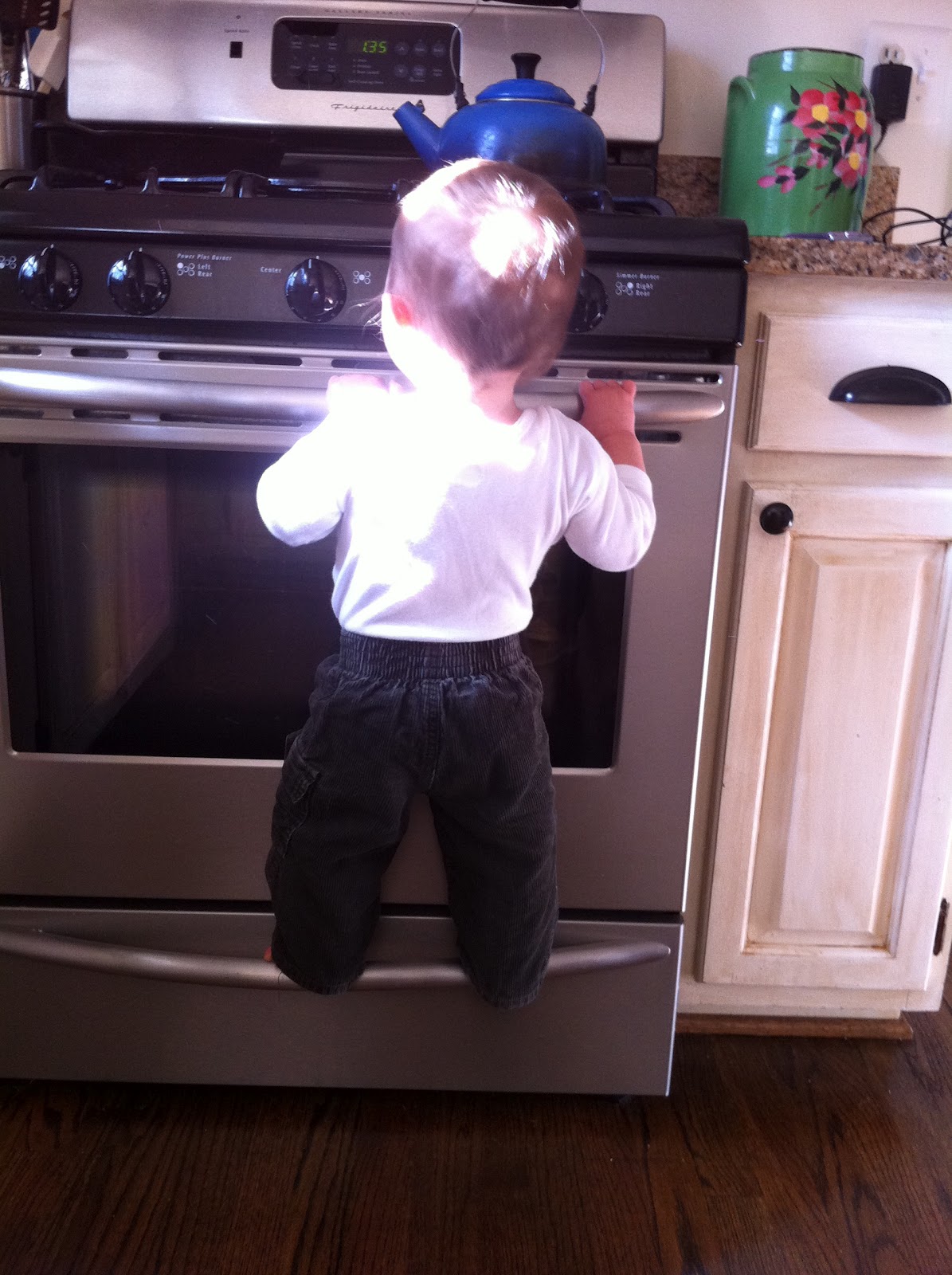 Lately my little one year old is making sure I work on it. He is keeping me on my toes and forcing me to stay alert. He is quick and he is daring. It amazes me how this little guy can lighten my spirits and remind me to relax and be mellow with the same intensity and just as quickly as his actions remind me to be ever-alert and careful. He is a busy, curious and determined little guy who wants to be a part of (or really the main attraction of) everything that is happening around him.