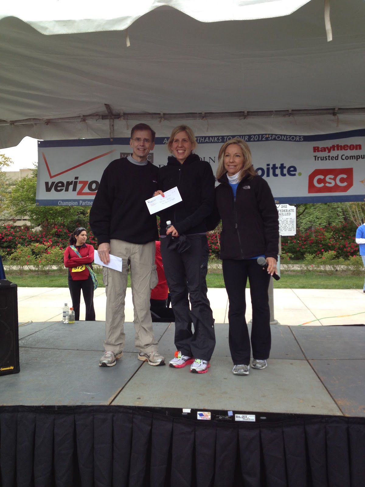 I finished 10 seconds behind the 2nd place female, who was a super nice girl as it turns out. The first place female beat me by about 30 seconds (she was also so nice). I stuck around for the prizes and was really excited to get a $100 gift certificate to Pacers running store — new shoes here I come!