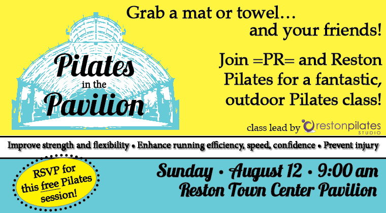 I hope you will come to this awesome event – whether you are new to running or have been running for a long time this will be a great opportunity for you to experience Pilates with other runners and feel the difference it can make for you. It is going to be a beautiful morning and the Reston Town Center is such a fun place – you can go for a quick run beforehand (that’s what I plan to do!) and then after the class grab a yummy coffee or brunch with your family or friends. I hope to see you there!