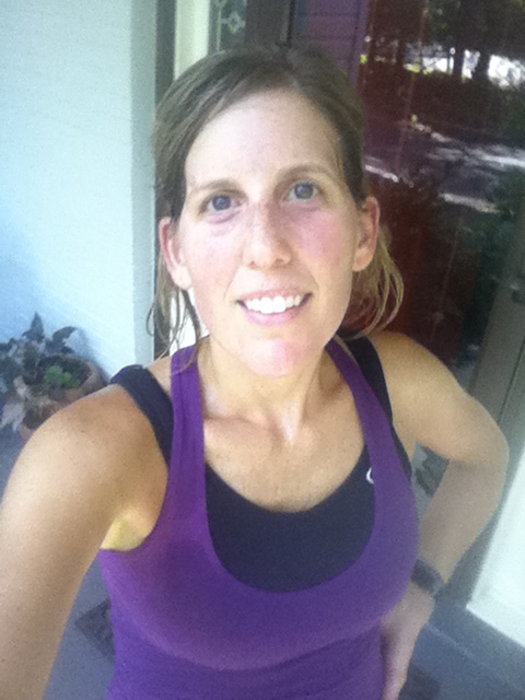 So come rest day, I embrace the opportunity to “put myself together” a little. And I do mean just a little. I follow some blogs that feature the sharing of non-running outfits and thought that I would share my own little ensemble just for kicks. So here is me today – ready for a day full of carpooling to/from camp, taking my baby to the pediatrician for his 6 month check up (!), shuttling off to swim lessons and running errands to get supplies for my little business, Sugar Cone…The picture is blurry and at a horrible angle because my photographer is my 6 year old daughter. I tried taking a full-body photo of myself and it was way worse than this, so until I can figure that one out Abby is my official picture-taker.