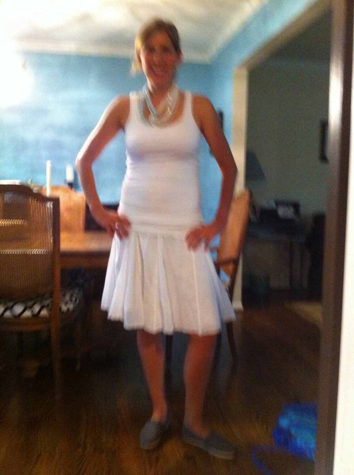 What I’m wearing: A Banana Republic skirt I have had for 3 years, two white “long & lean” ribbed tank tops from Target (I have a gazillion of these and pssssst they are currently on sale for $5 each!), my TOMS shoes which I love and a beaded necklace from Anthropologie (my favorite store on the planet).