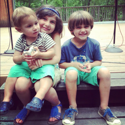 - In order to keep myself from feeling antsy for some “me time” halfway through my rest day, I plan a fun outing or activity for us in the morning – something we don’t do every day. Today we went to an awesome concert (Robbie Schaefer! If you haven’t heard his music before, you should check it out because he is really fantastic) at an outdoor theater that I love so much (Wolf Trap’s Theater in the Woods). The stage is nestled in the woods and is just a truly magical place – I went there as a child and have some wonderful memories. I packed us a picnic lunch and after the concert we stayed and enjoyed lunch together and played in the grass. We were ALL blissfully wiped out by the time we got home and were ready for some down time. Now baby Gus is napping and the big kids are watching a movie and we can all have some down time before we having swimming this afternoon and evening!