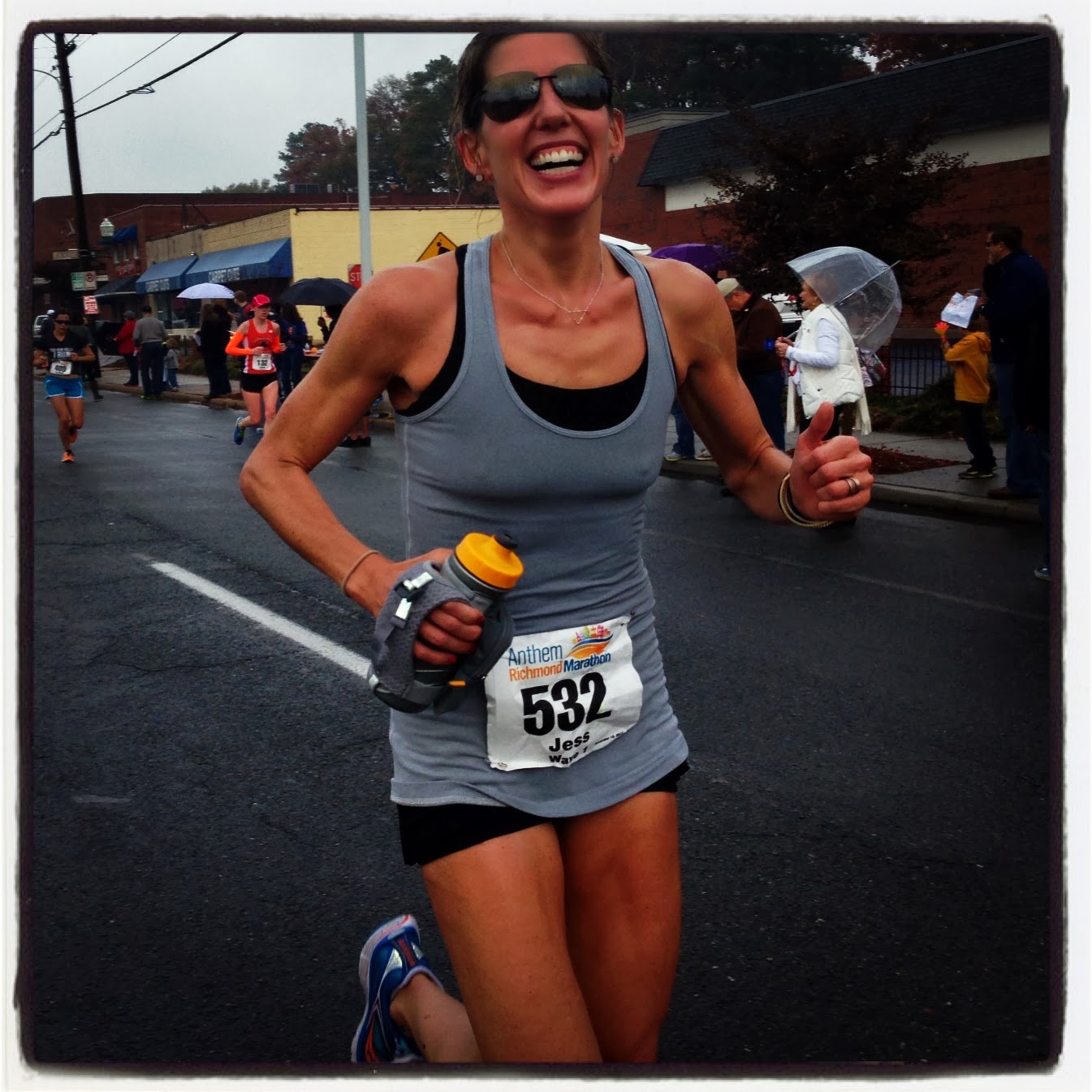 I think the biggest lesson I have to face from Richmond is this – I am still a scaredy-cat when it comes to putting myself completely out on the line. Don’t get me wrong – I have done a ton of work on this and I have grown by putting myself in tough places and pushing through them, but when it comes to racing the marathon I am bit of a chicken later in the race. I keep myself as comfortable as possible for as long as I can and then when things start to get hard, I just make it my mission to stay comfortable, which oftentimes means pulling back and resisting the chances for disaster. This might sound smart to you, and for the first 2/3 of the race I think it really is the way to go, but what I’m realizing from Richmond is that I am going to need to take a risk later in the race if I want to achieve my full potential. I’m going to need to make myself really uncomfortable during those last 6 miles of the marathon, and let things happen and maybe even let my wheels fall off as a result…and be OK with that because I will KNOW I gave it my all.
