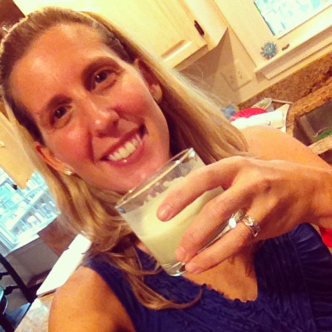 I keep my recipes very simple and don’t measure anything. I take whatever is on hand – in the fridge, the freezer or on the counter (fresh peaches, bananas, blueberries and strawberries are my favorites) – and mix them up in my mini blender with some vanilla soy milk or orange juice. It’s quick and yummy and never ever disappoints.