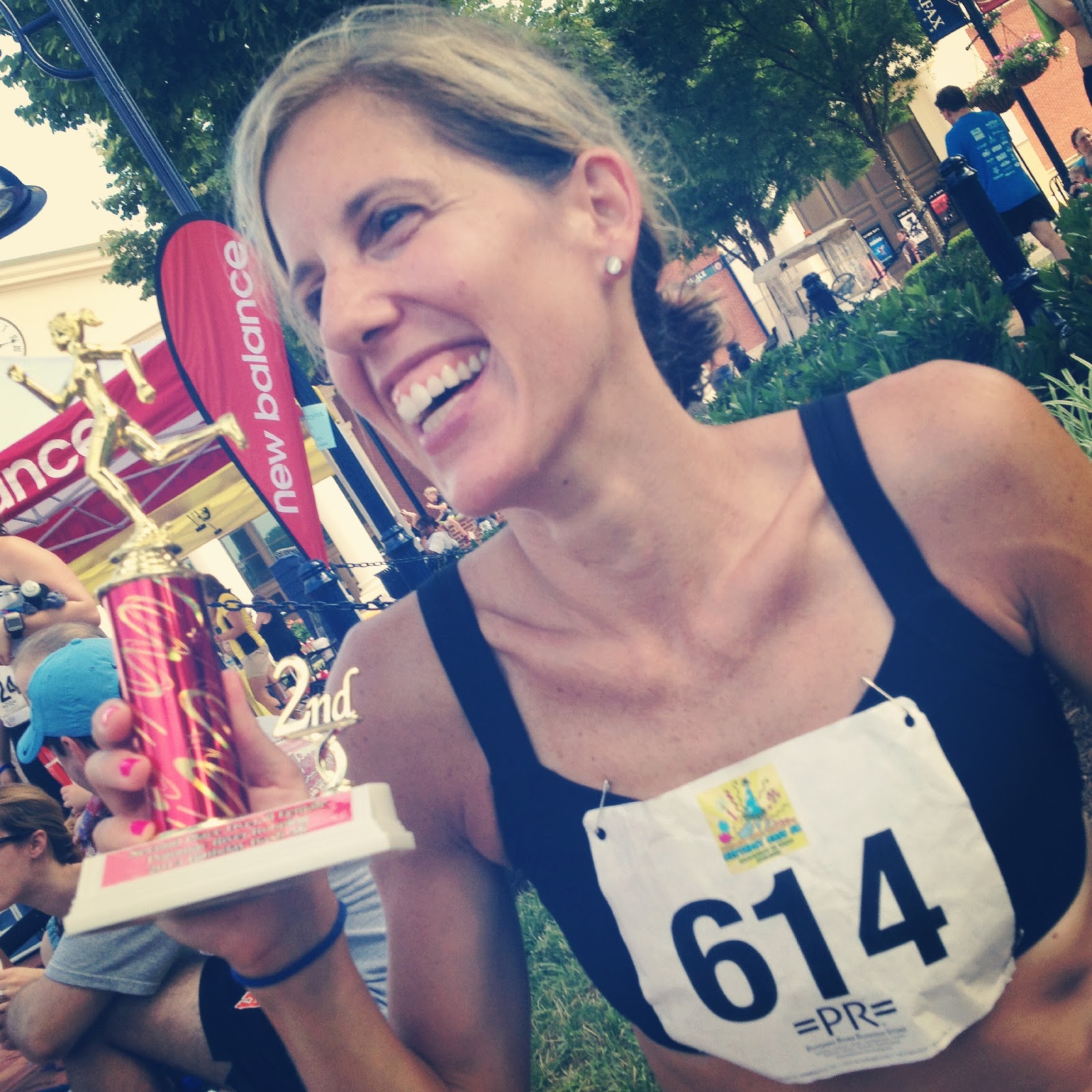 I thought for sure I had a PR in the bag, even with the slower last mile. But in fact the course was a little long – my watch clocked it in at 3.2 miles again! The last .2 I held onto a 5:41 pace though, and was definitely feeling strong. I averaged a 6:14 pace for the entire run – I thought this was extra cool because my bib number was 614!!! I was so happy about it – I ran one second faster than my goal pace! It wasn’t an official PR (missed it by ONE SECOND!) because the course was long, but I honestly don’t care. I was really happy with how I did. And what was even sweeter – I was the 2nd overall female! This just literally amazed me! My sister was waiting for me as soon as I crossed and gave me a water bottle and a huge sister hug. There really isn’t a better way to finish a race if you ask me!