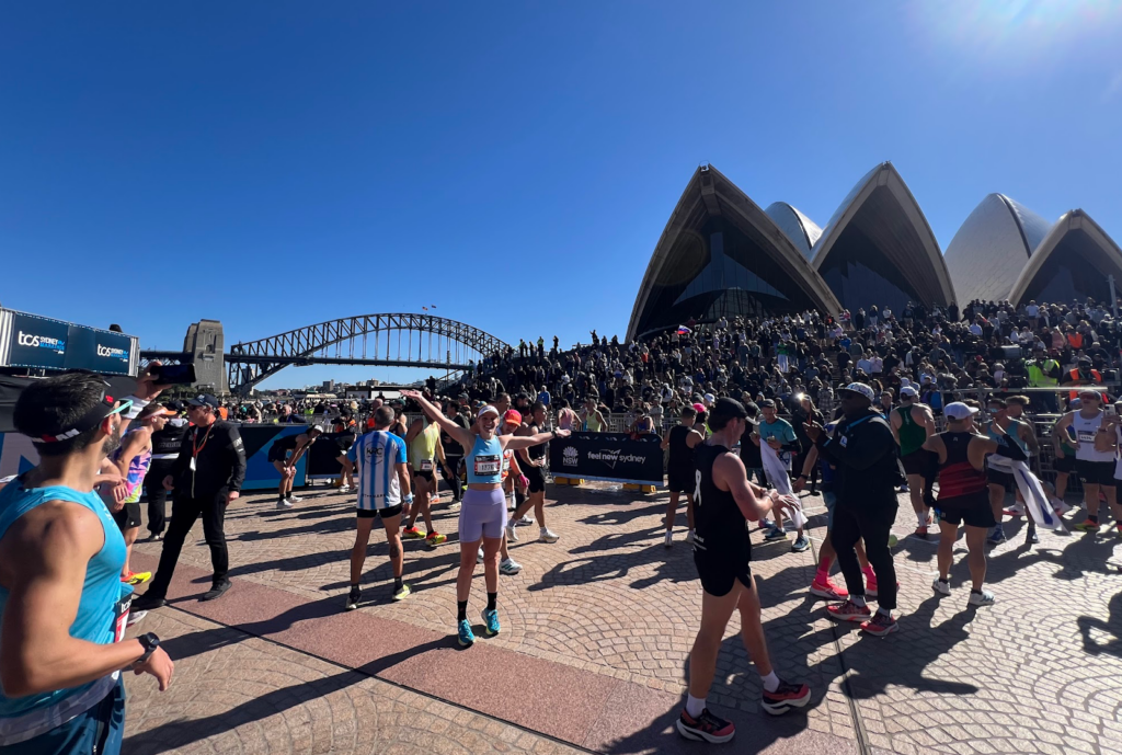 Coach Maddie at the epic finish line at Sydney 2025