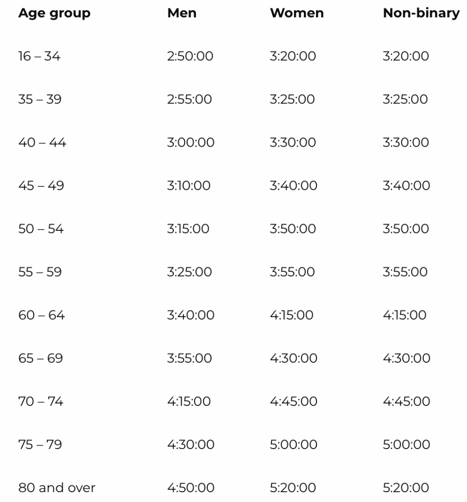 Runners up to 59 years (born 1981 to 1967): under 2:55 hours