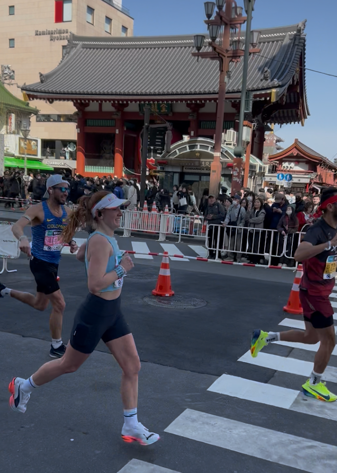 Coach Maddie coming through Mile 11 in Tokyo