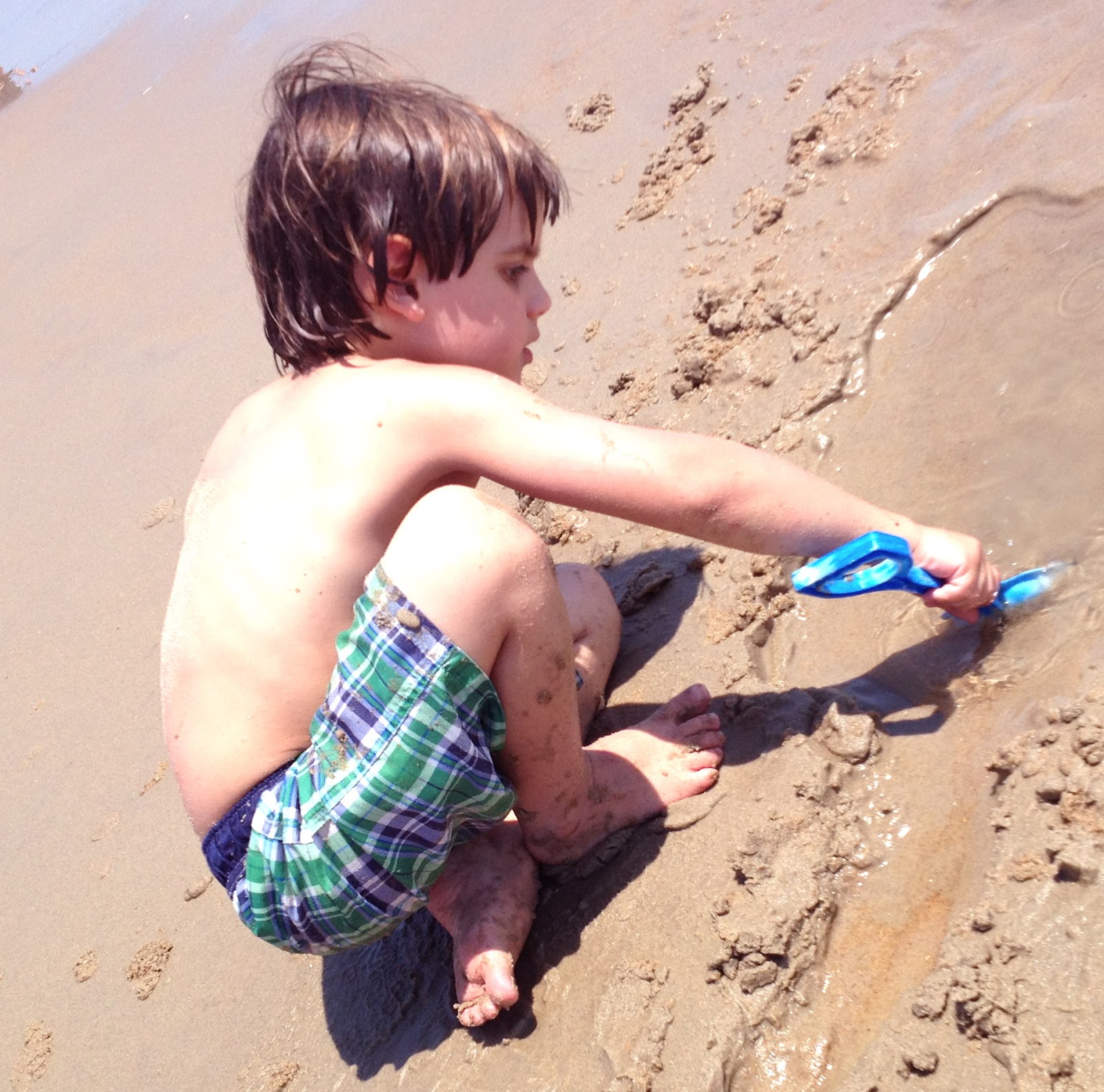 I came home and changed out of my running clothes – time to get to the beach with my family! Everyone was so excited. Will was boogy-boarding, Abby was dancing in the sand and digging for sand crabs, and Gus — well Gus was just taking it ALL in. It was SO much fun to watch him explore the beach. I can honestly say that nothing makes me happier than seeing my family enjoy the beach. Pure BLISS.