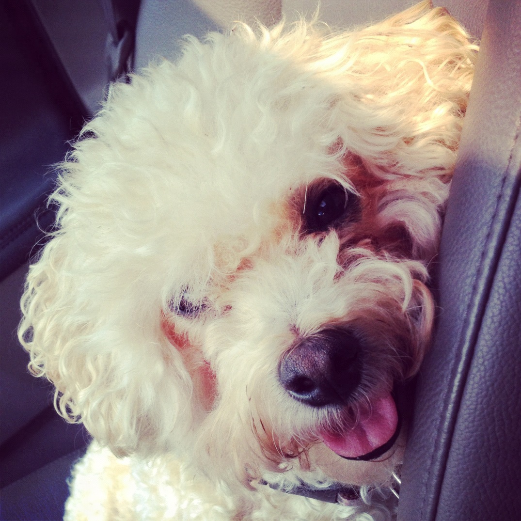 Riley is almost 11 years old. She was our first baby, coming into our home just before our wedding day. She is an angel and I love her so much. She still acts so much like a puppy, but lately it is becoming apparent to us that she is aging. I noticed a couple of weeks ago that she was becoming incontinent, having accidents in her sleep. I hear or see her fall down the stairs almost on a daily basis (not the entire flight, but she slips and falls down at least 3-4 stairs). She has never sustained an injury from this, but I am so scared that she will. The other day we found one of her teeth on the kitchen floor. It is hard to watch my puppy dog get older. It makes me sad. Riley’s life changed a lot after we had kids. I used to work from home and she would sit on my desk or cuddle in my lap as I worked. She went everywhere with me. I don’t have the same amount of time to spend with her anymore. I hope she knows how I much I love her even though I don’t show it in the same ways that I used to. On the way to the boarding place on Friday she sat in the seat next to me. At a stop light I put my hand on her little head and pet her, stroking right on the bridge of her soft nose. She closed her eyes blissfully and then looked up at me and I just knew without a doubt that my pup knows I love her so very much. She is the sweetest soul.